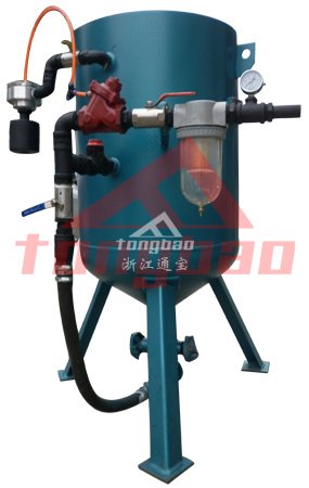 噴砂機的特點是設(shè)有進(jìn)氣壓力、噴砂壓力顯示,并裝有減壓閥,可以根據(jù)需要調(diào)節(jié)噴砂壓力。在壓縮空氣進(jìn)口裝有過濾器,以濾去壓縮空氣中的水分。